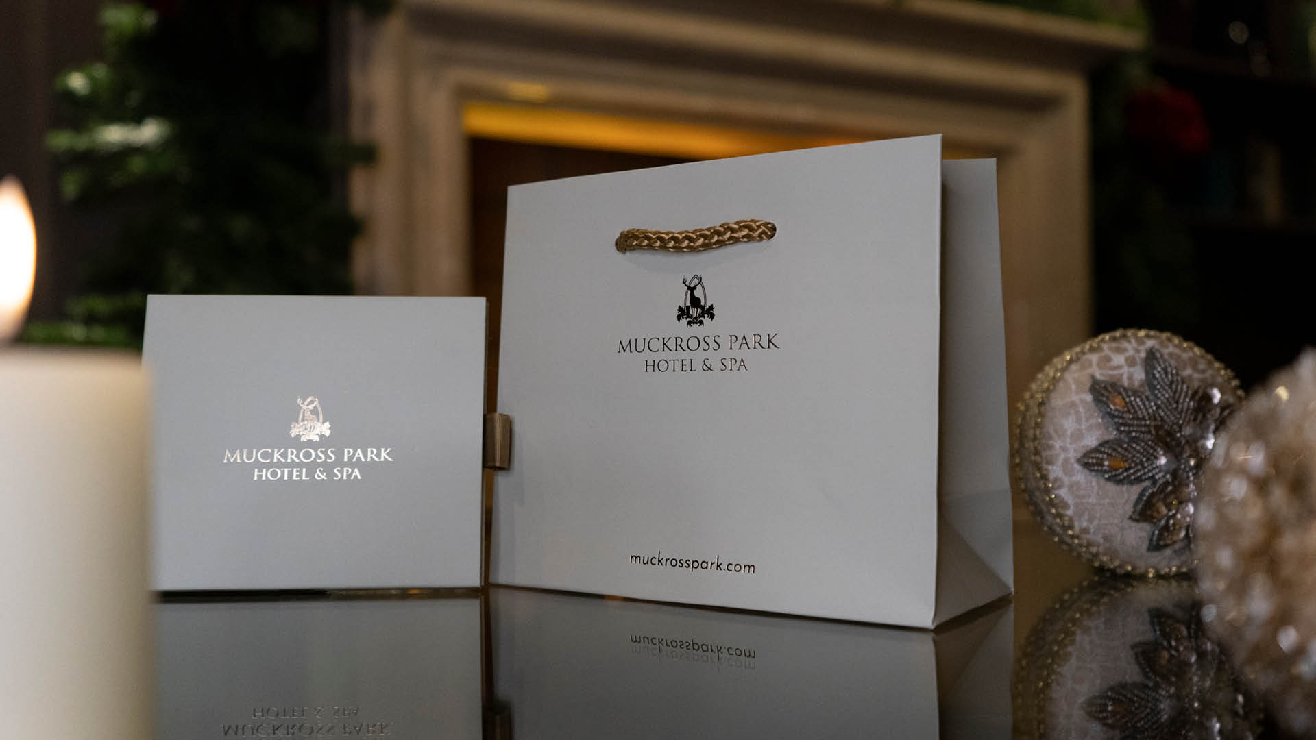 Every Muckross Park Hotel & Spa voucher arrives beautifully presented, delicately placed within a bespoke gift box, finished with signature ribbon, and nestled in a branded gift bag. The presentation is part of the experience, refined, romantic, and unforgettable.